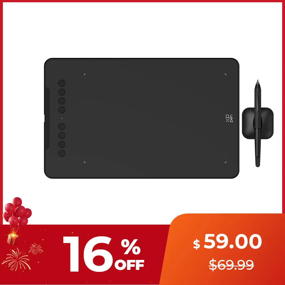 16K Pen Pressure, 10 x 6.25-inch working area, 60 degrees of tilt brush effect, Supports Android, Mac OS & Wins.